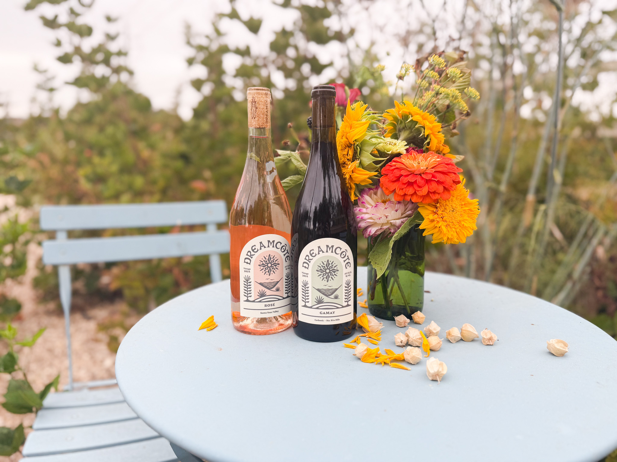 Our small-town tasting room is located in rural Los Olivos, California. Our intimate setting features both indoor and outdoor dog and kid-friendly seating. Our tasting experience consists of 2 wine flight options – a sparkling flight and a still wine flight. Dreamcôte Wines are crafted with care by Ryan & Brit Zotovich in Santa Barbara County.